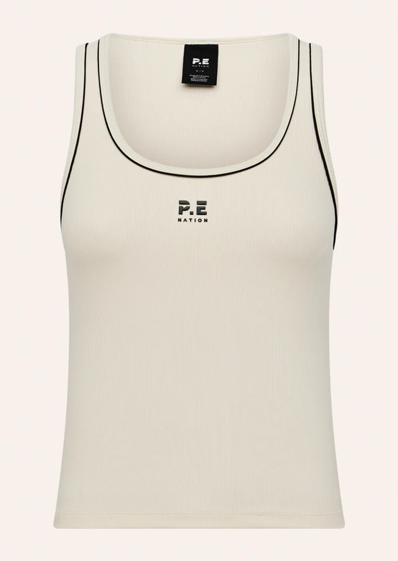 The Nexus Rib Tank in Whisper White is made from our soft studio rib fabrication. This slim fit active tank features a flattering scoop neckline, an internal shelf bra and a contrast binding detail
