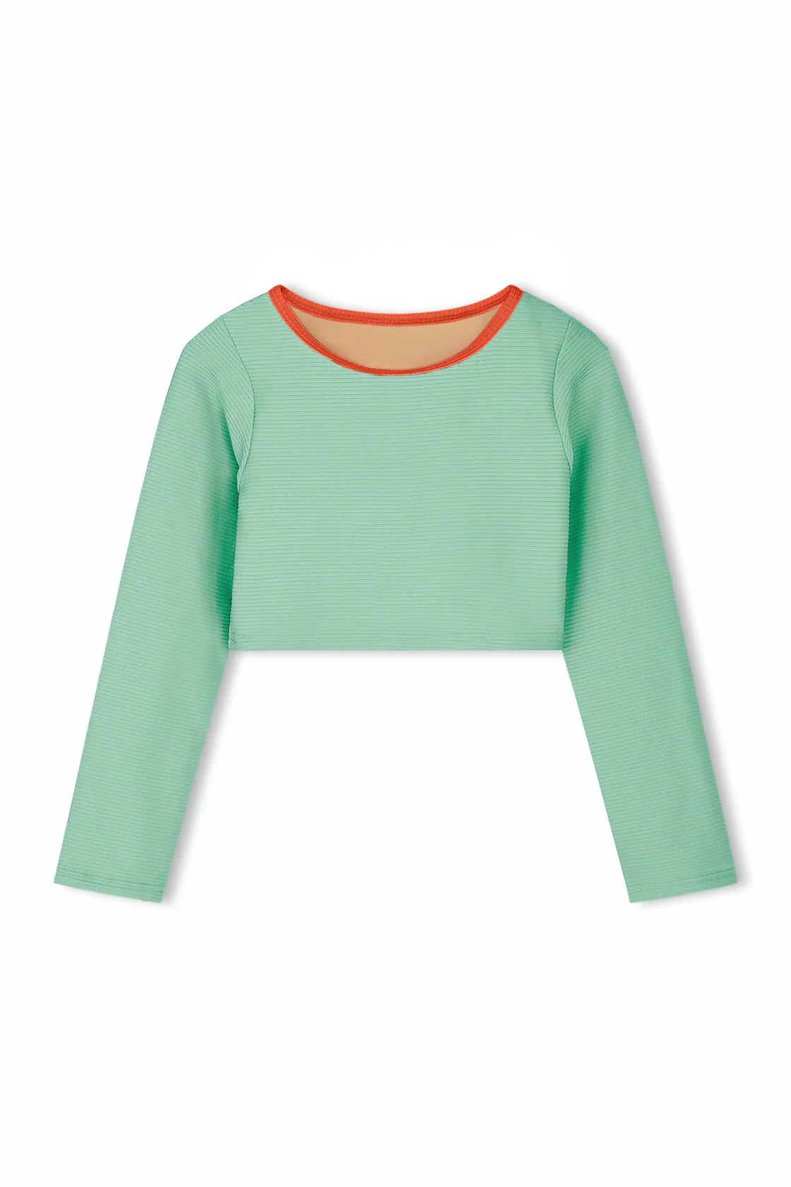 The Mini Rib Crop Rashie by Zulu & Zephyr is a long-sleeved ribbed style, featuring contrast rib binds, round neckline and cropped length. Pair with your preferred Mini swim bottom or one piece.
